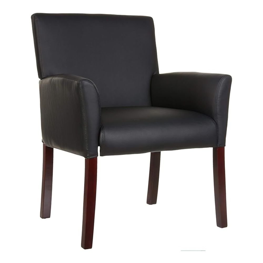 AmazonBasics Classic Reception Office Chair with Mahogany Wood Finish Legs – Black