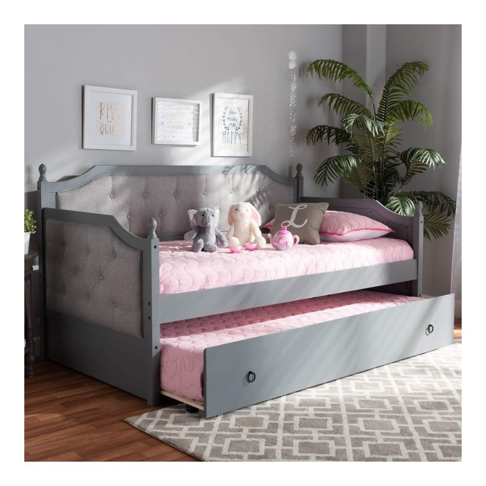 Baxton Studio Mara Wood Upholstered Twin Daybed with Trundle in Gray