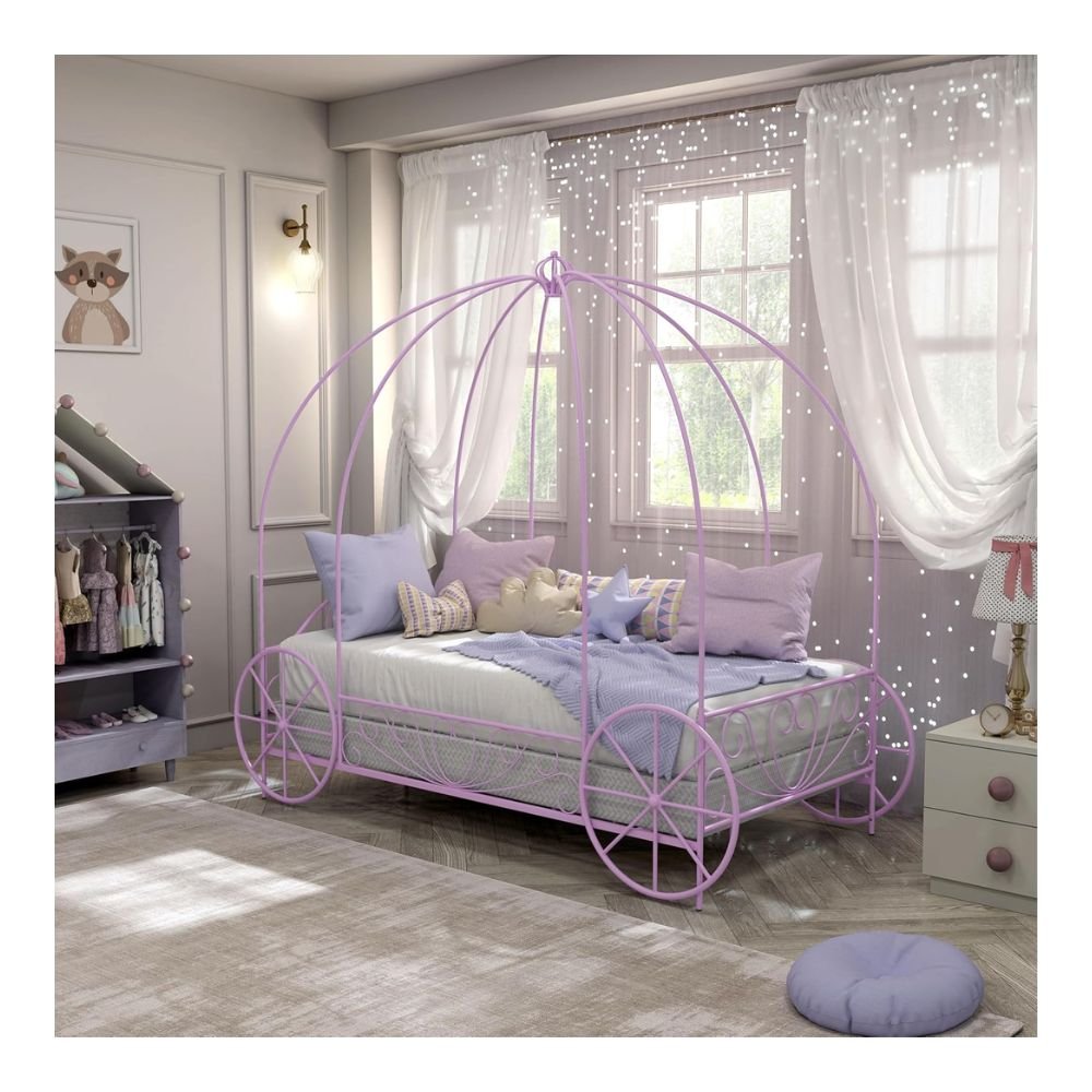 DHP Metal Carriage Bed, Fairy Tale Bed Frame, Shabby-Chic Style, Twin, Lilac