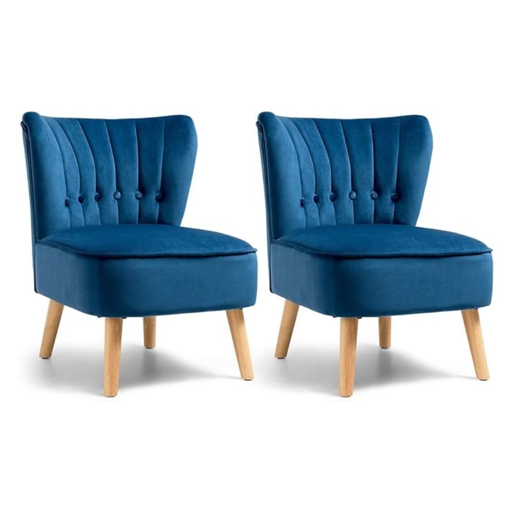 Giantex Set of 2 Velvet Accent Chair, Upholstered Modern Sofa Chair w/Wood Legs, Thickly Padded, Armless Wingback Club Chairs for Living Room Bedroom Furniture (2, Blue)
