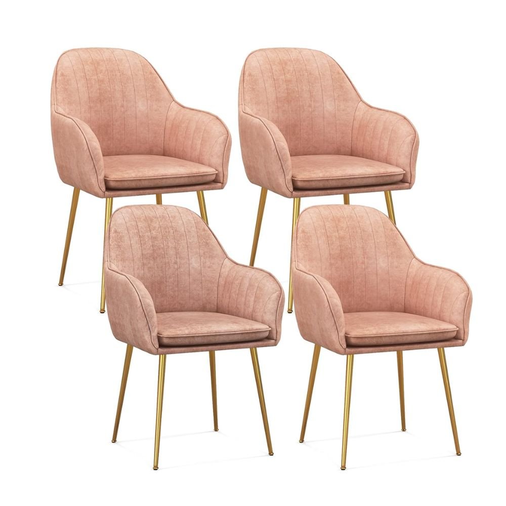 Giantex Set of 4 Velvet Dining Chairs, Modern Leisure Accent Living Room Chair w/Wood Legs, Non-Slip Foot Pads, X-Shaped Support, Comfortable Cute Arm Chair for Dining Room, Bedroom (4, Light Grey)