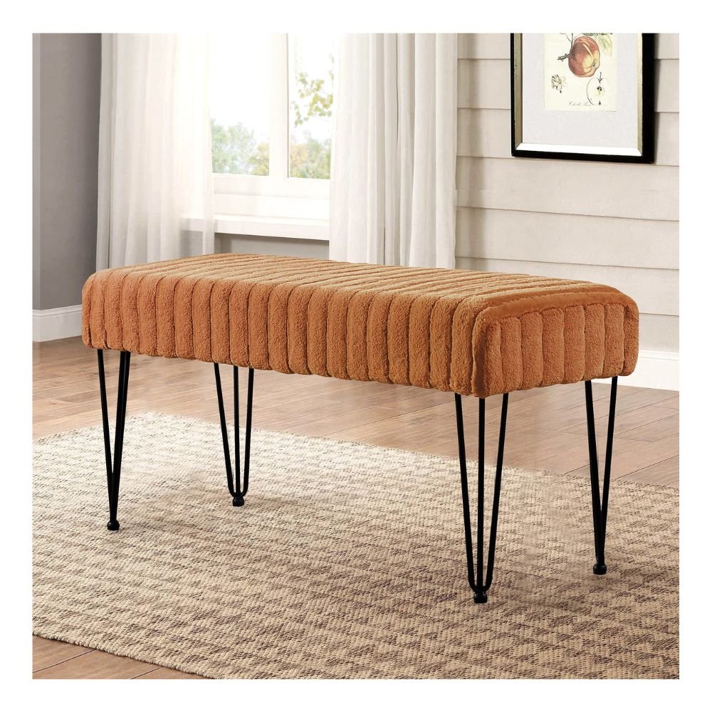 Home Soft Things Super Mink Faux Fur Orange Ottoman Bench, 46″ x 16″ x 25″ H, Umber, Living Room Foot Rest Stool Entryway Makeup Bench End of Bed Bedroom Home Decor Chair for Sitting