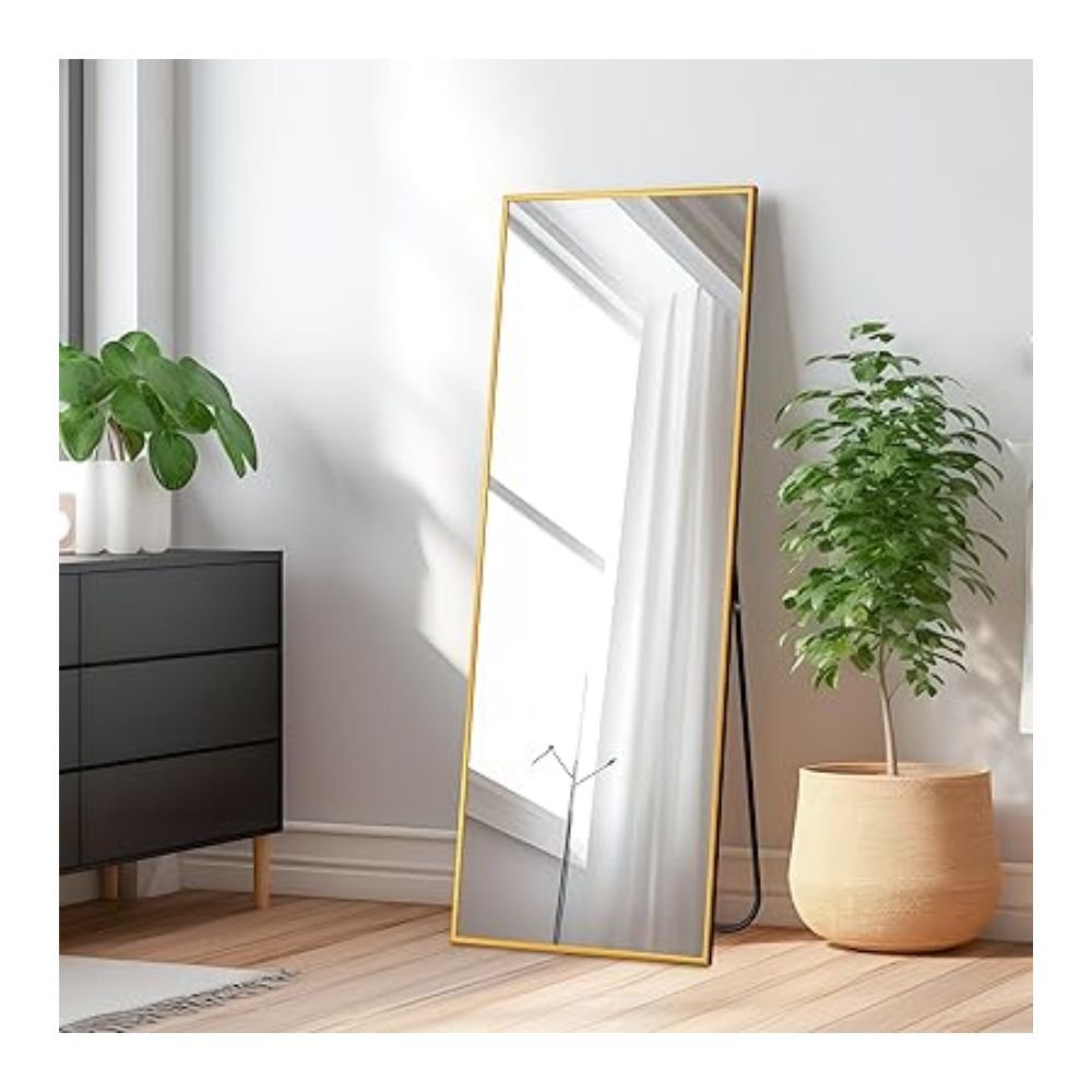 ALUMINUM ALLOY FRAME: The large floor dressing mirror is in uniform color and fine surface because we used matte polished aluminum alloy frames.The aluminm frame is very thin, light but durable, convenient for move and installation.