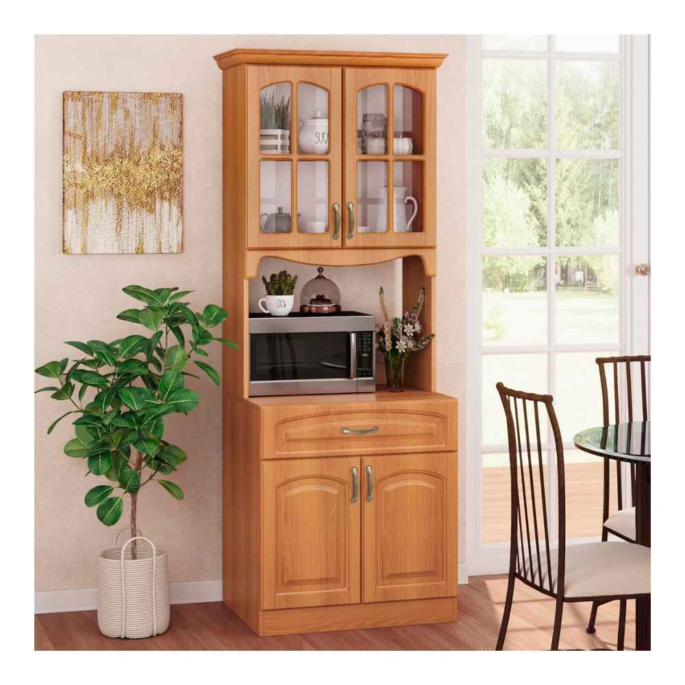 MODERN DESIGN: We’ve enhance the classic hutch cabinet perfectly for modern needs, by adding an open space specifically designed to fit one household electric device such as a microwave, coffee machine or toaster oven, while retaining the storage shelves.