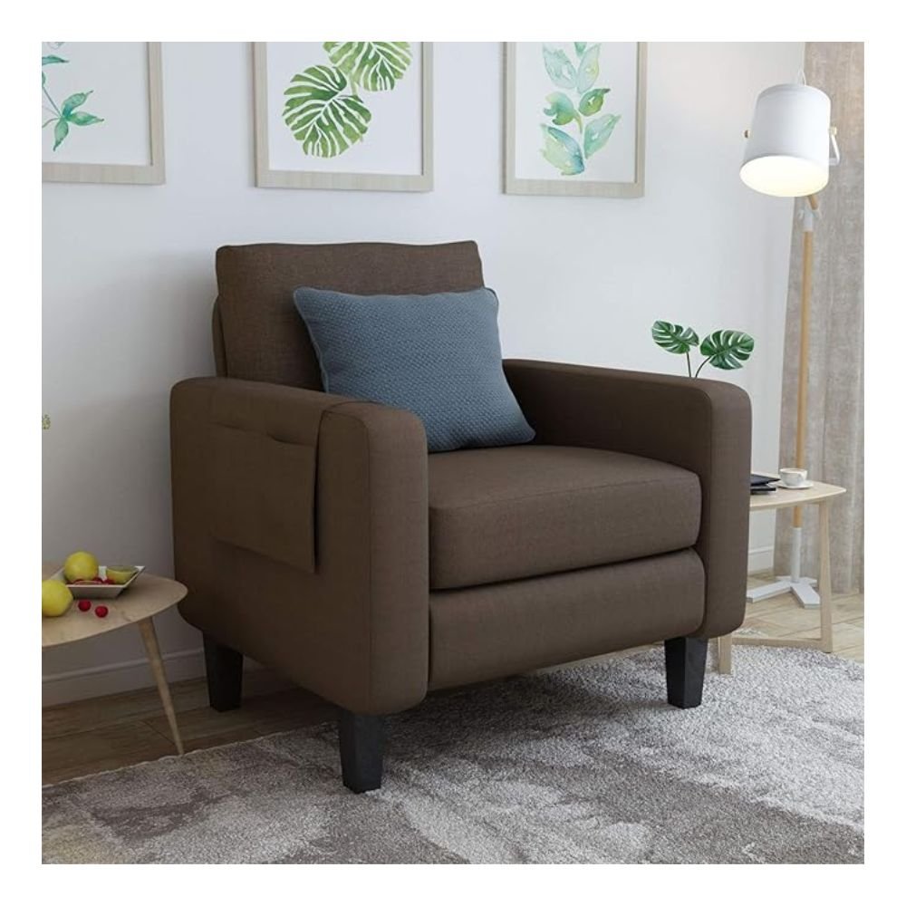 Modern Design Armchair:Sold in a set of 2 chairs,Matching perfectly with any decor theme, is a great addition to your living room bedroom or office.The side pocket is convenient for small things like remote control or magazine