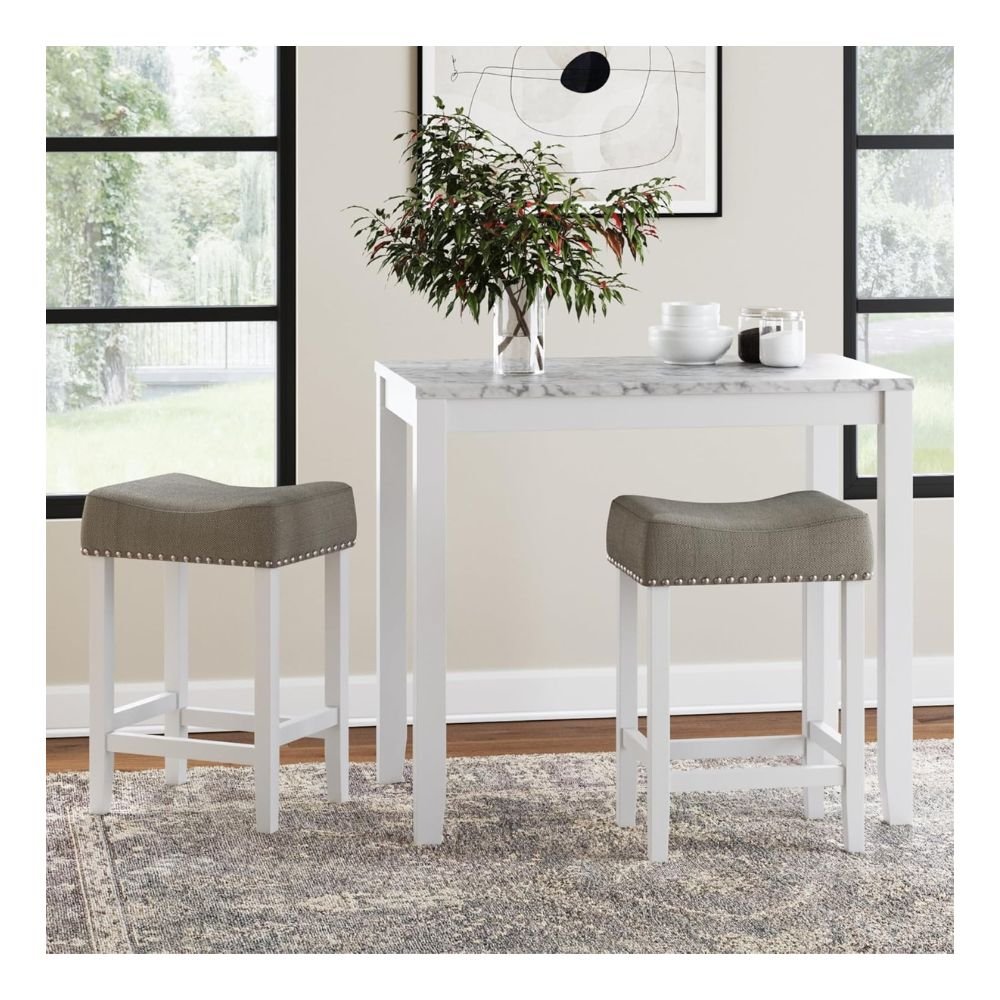 Nathan James 41201 Viktor Dining Set Kitchen Pub Table Marble Top Fabric Seat Wood Base, Light Gray/White
