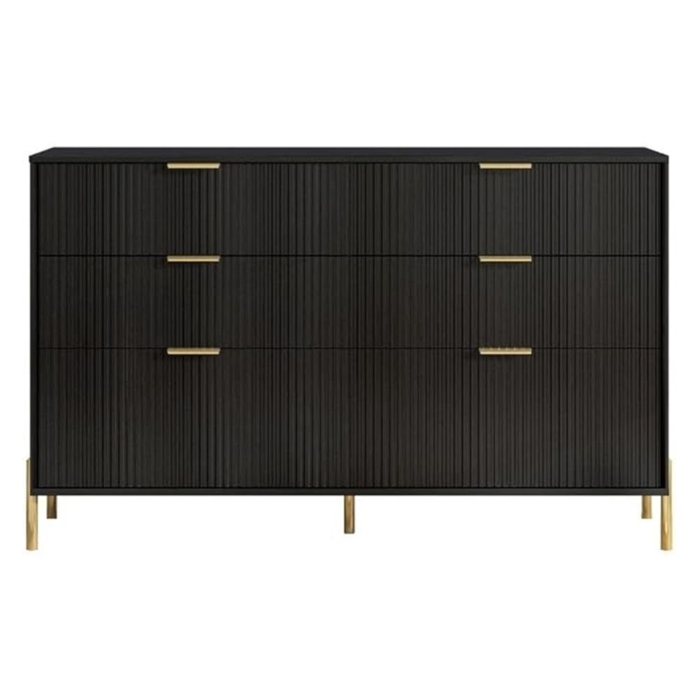 Pemberly Row 6 Drawer Double Dresser in Black Woodgrain