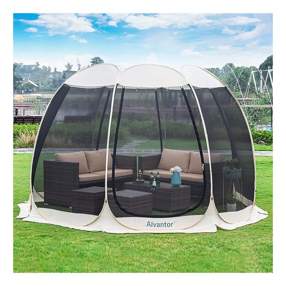 Sliq Outdoor Pod with 4 People Capacity – Instant Pop Up, Snow/Wind/Rain Proof for Patios, Backyards, Camping, RV, Canopy Gazebo, Tent, Screen House, Greenhouse (9.5’x9.5’x7′, Beige)