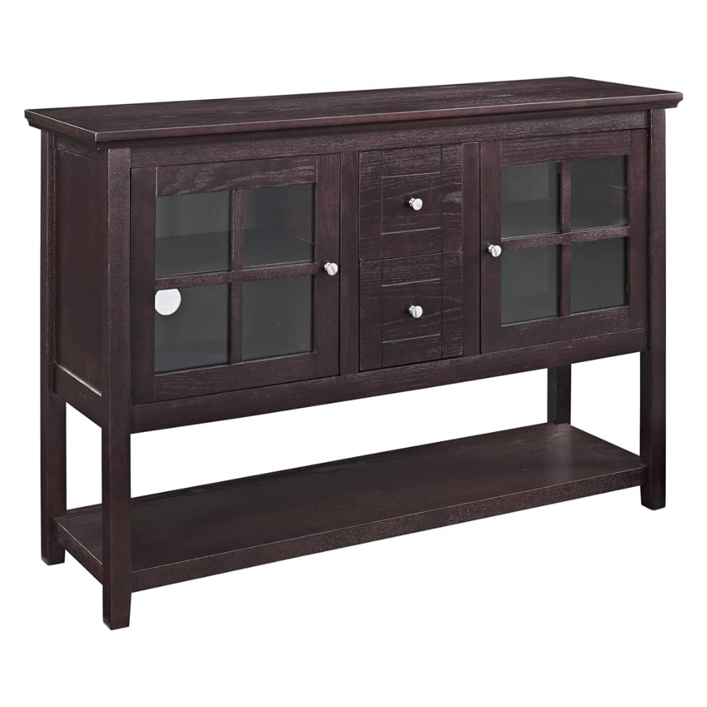 Walker Edison Charlotte Classic Glass Door Storage Buffet, 52 Inch, Espresso