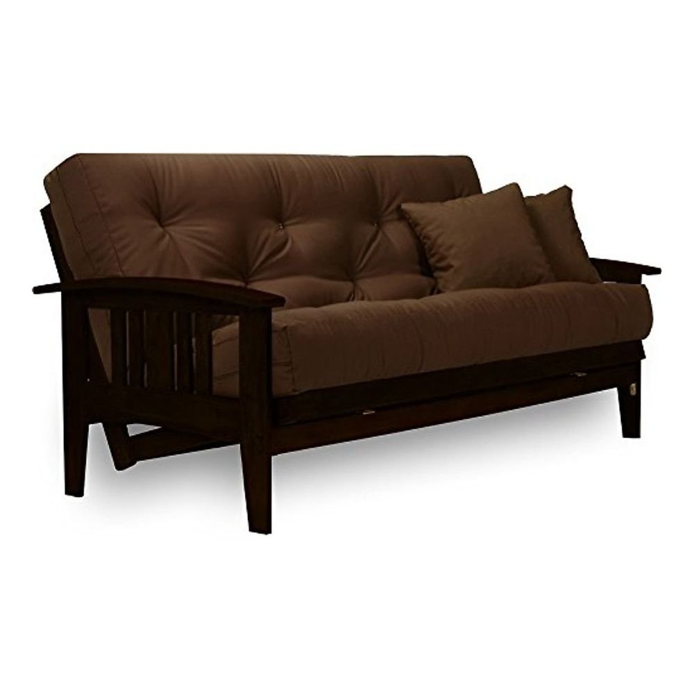 Westfield Rich Espresso Futon Frame – (Available in Full or Queen Size, Warm Black Finish) Made of Solid Wood, Mission Style Futon Sofa Sleeper Frame with Curved Arms